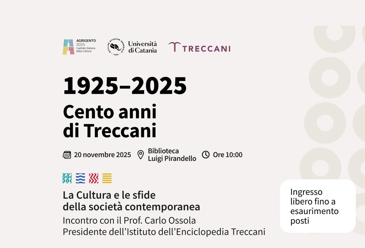 In occasione dei 100 anni dalla fondazione della Treccani (1925–2025), Agrigento Capitale Italiana della Cultura 2025, in collaborazione con l’Università degli Studi di Catania e l’Istituto dell’Enciclopedia Italiana Treccani, ospita un evento speciale con Carlo Ossola, Presidente dell’Istituto Treccani e tra i più autorevoli studiosi di letteratura e cultura europea.