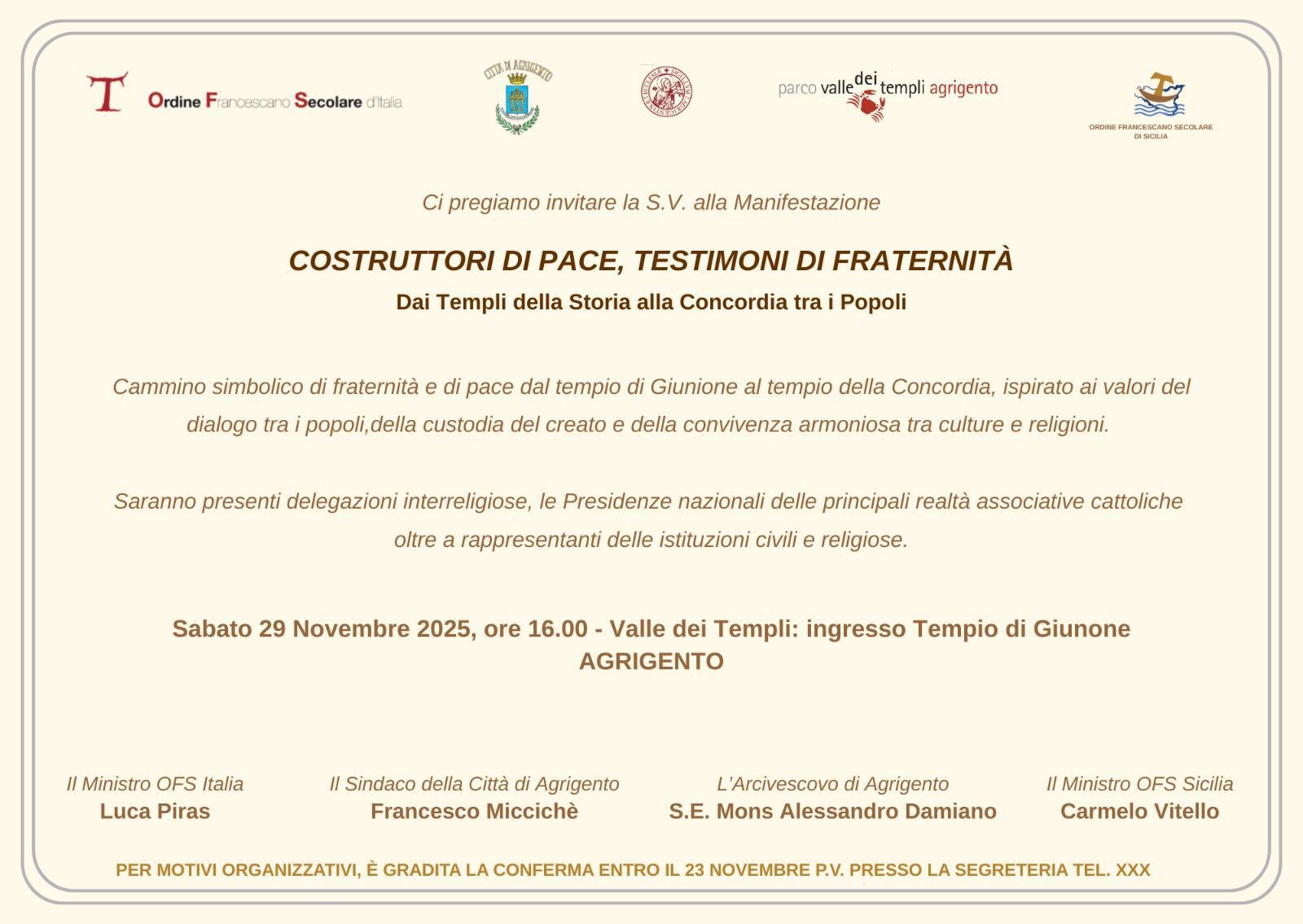 Costruttori di Pace, Testimoni di Fraternità - Dai Templi della Storia alla Concordia tra i Popoli (inizio ore 16.00)