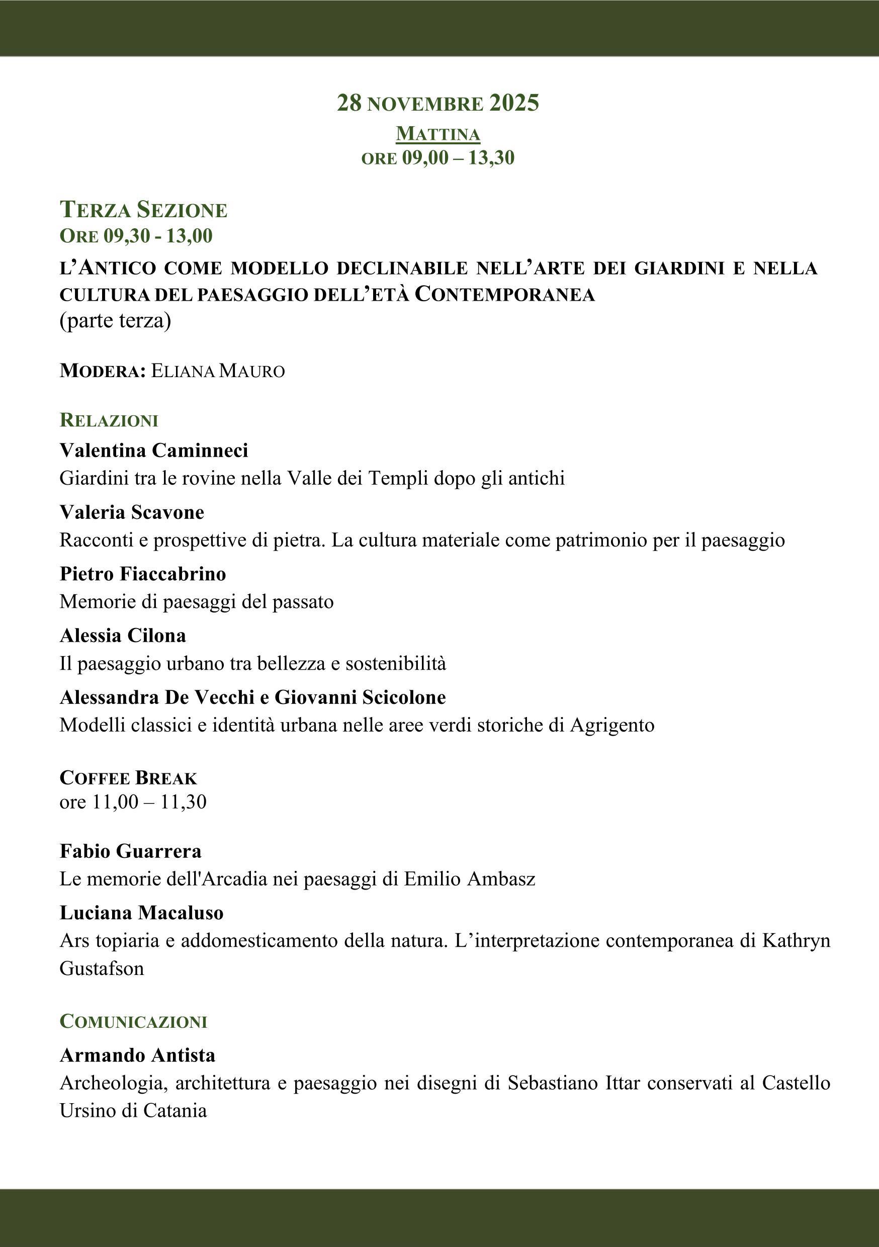 Terzo Convegno Il Valore della Classicità nella Cultura del Giardino e del Paesaggio l'Antico come modello declinabile (inizio ore 9.00)